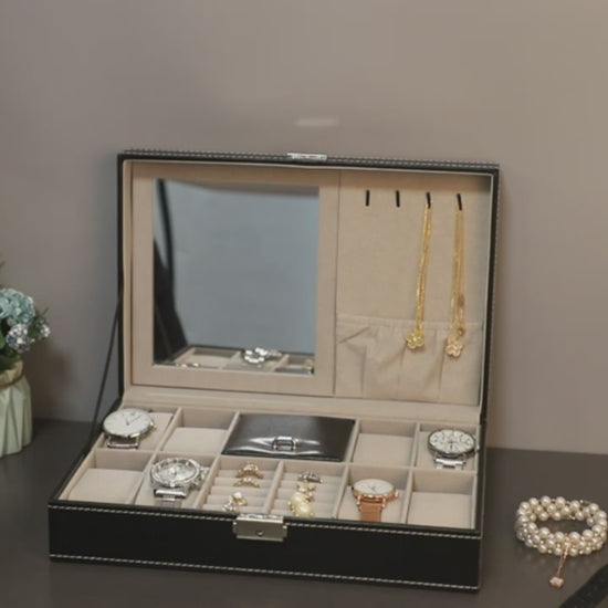 Boîte à Bijoux en Cuir pour Montres avec Serrure et Miroir