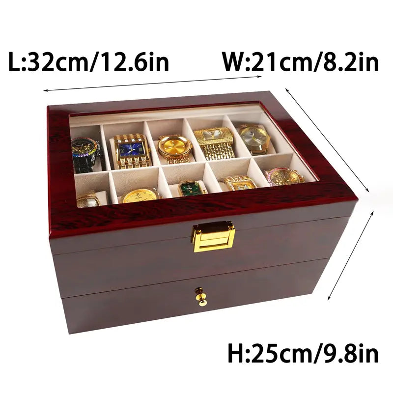 Optez pour la Boîte à montres en bois à 20 emplacements pour un rangement de montres qui allie élégance naturelle, protection robuste et fonctionnalité, offrant un écrin parfait pour présenter et protéger vos précieuses montres.