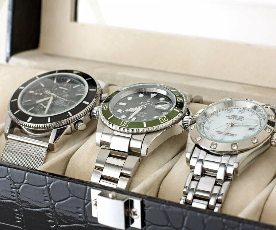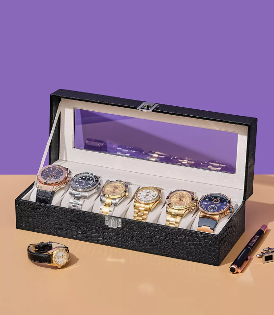 - Mise en Valeur Individuelle : Chaque emplacement est doté d’un coussin rembourré qui maintient et expose vos montres de manière élégante et sécurisée.