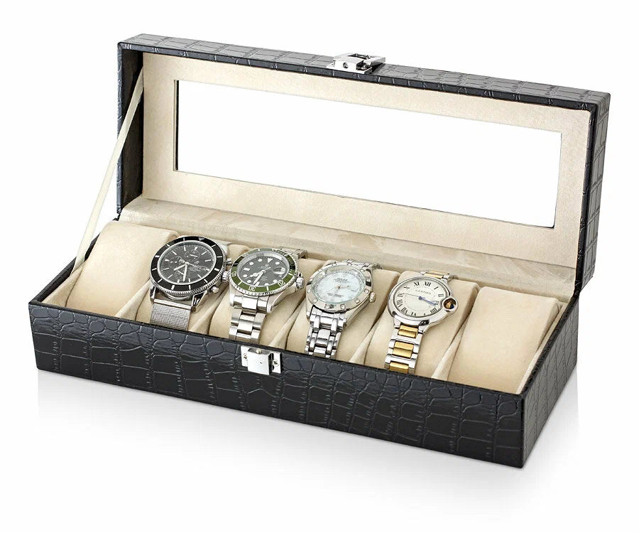 Boîte à Montres en Crocodile Noir - 6 Emplacements au Maroc
