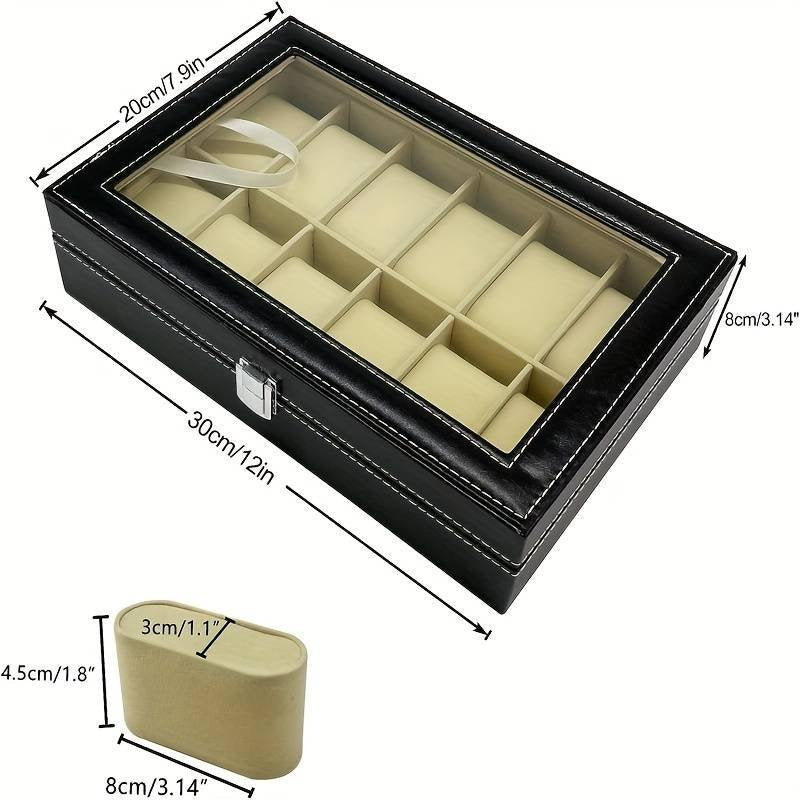 Capacité de 12 Emplacements : Avec ses dimensions de 30 x 20 x 8 cm, cette boîte dispose de 12 compartiments, chacun conçu pour maintenir vos montres en sécurité et éviter les rayures.