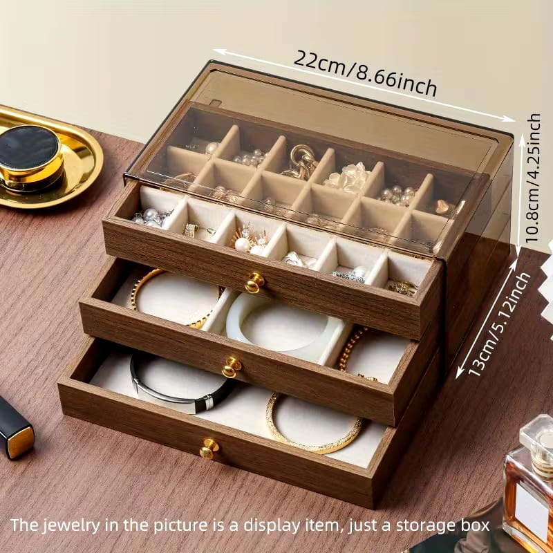 Coffret à Bijoux en Noyer – Rangement Luxe 3 Niveaux